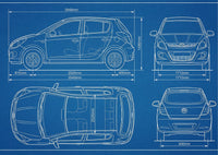 Hyundai i20 Blueprint Poster – Technische Zeichnung als hochwertiges Wandbild