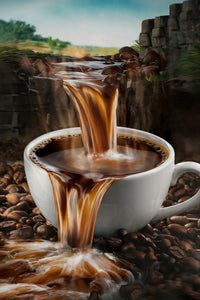 Starten Sie jeden Tag mit einer visuellen Koffein-Injektion. Unser exklusives Wandbild "Kaffee Wasserfall" verschmilzt die rohe Kraft der Natur mit dem geliebten Ritual des morgendlichen Kaffees.