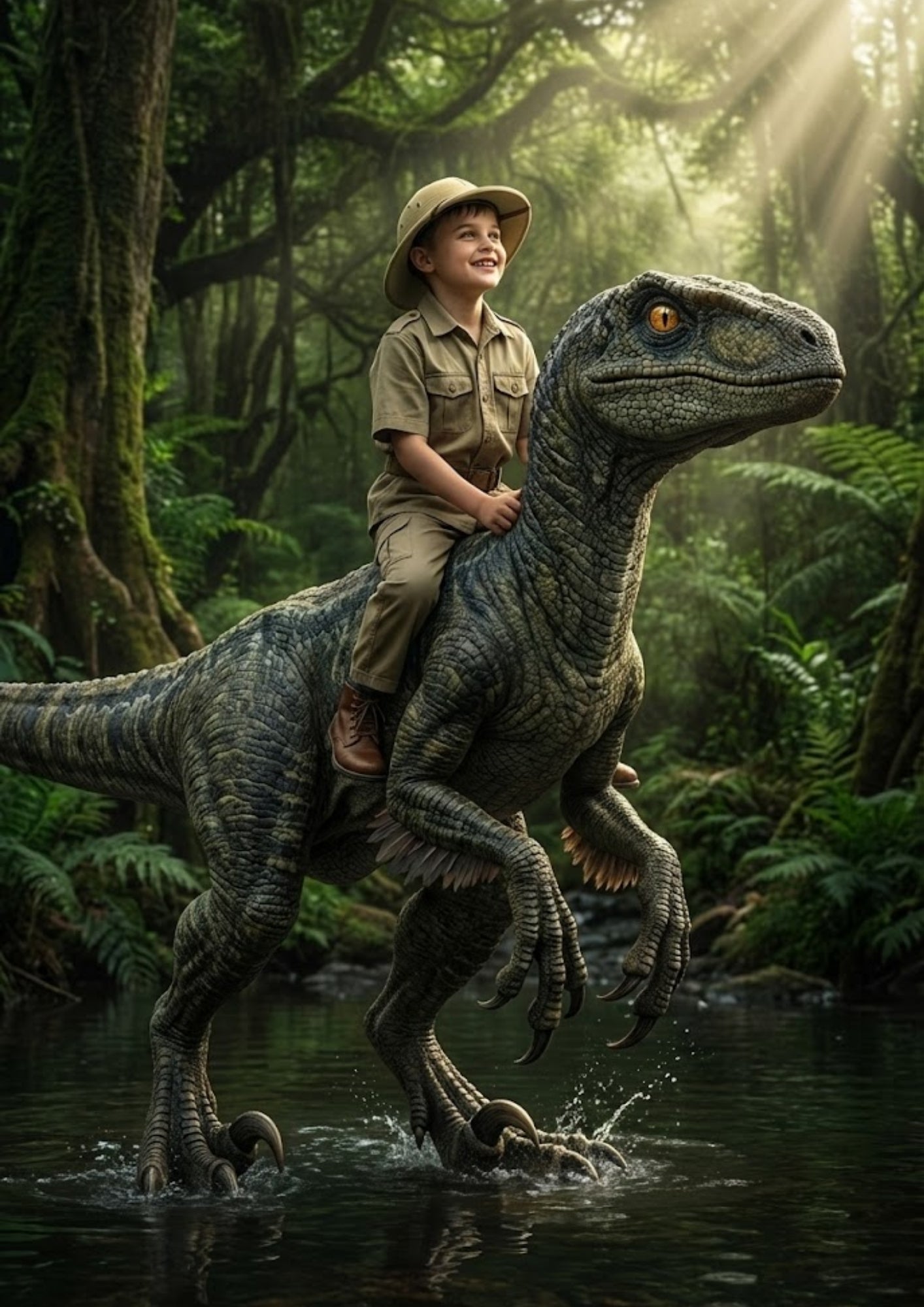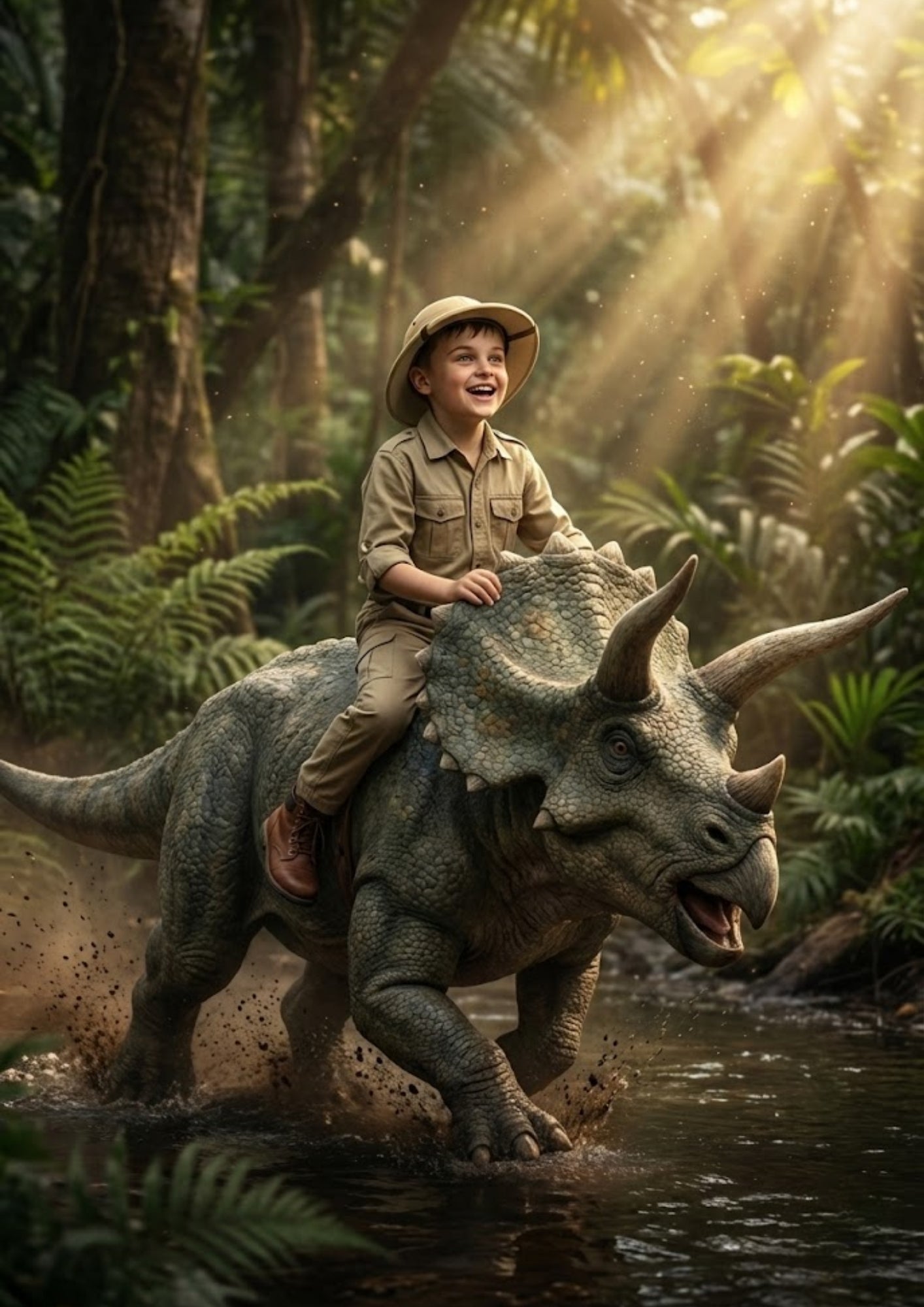 Welches Kind träumt nicht davon, einmal auf dem Rücken eines gigantischen Dinosauriers durch den Dschungel zu streifen? Mit unserem Bestseller "Der Dino-Reiter" wird dieser Traum (fast) Wirklichkeit. Wir verwandeln ein ganz normales Foto deines Kindes in ein atemberaubendes Abenteuerbild, das jeden Spielkameraden vor Neid erblassen lässt.