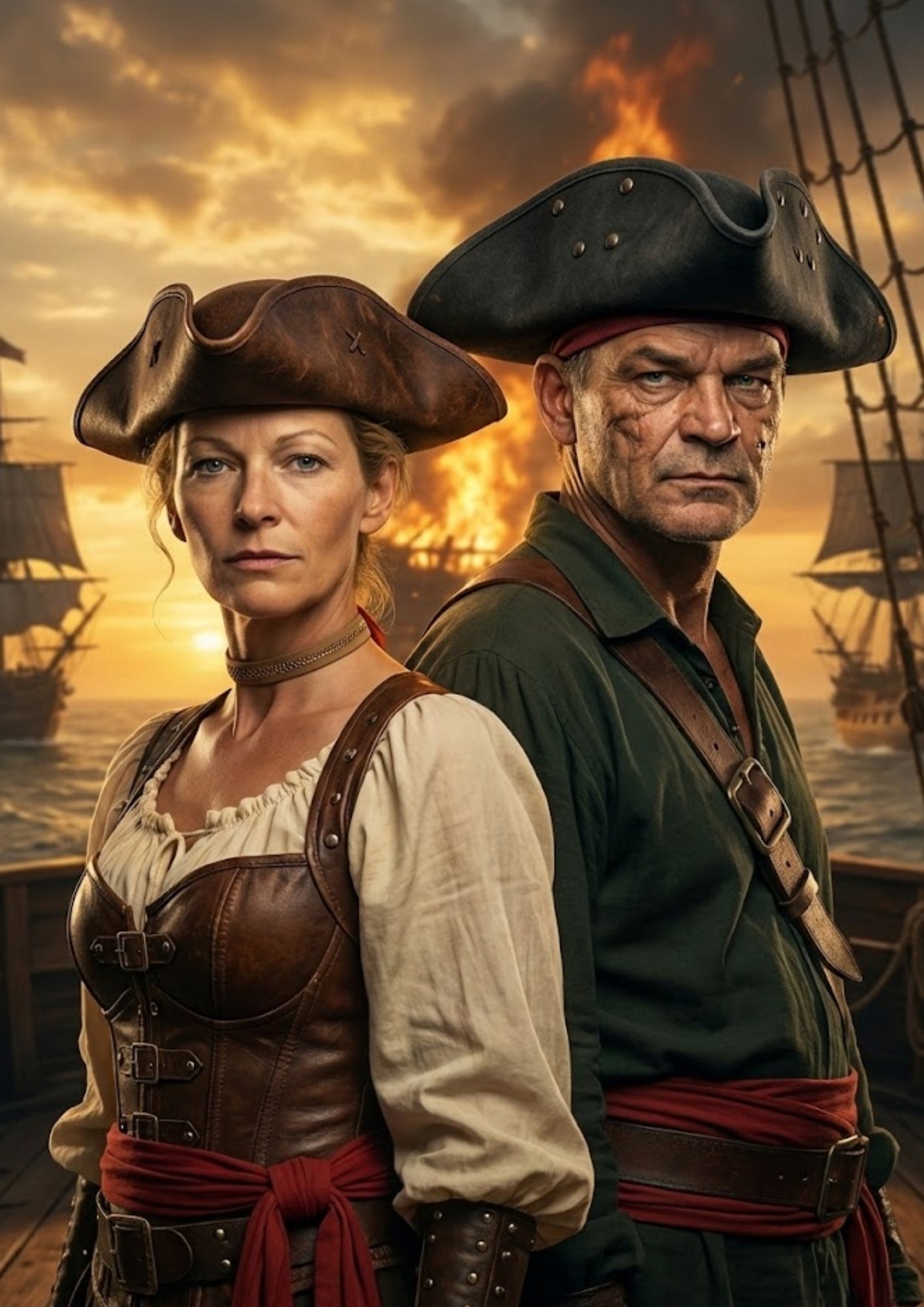 Magische Verwandlung: Unsere talentierten Designer integrieren Ihre Gesichtszüge nahtlos in das epische Piraten-Outfit – komplett mit Hut, Mantel und dem passenden verwegene Blick.