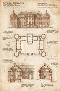 • 📐 Meisterhafte Details: Zeigt die beeindruckende Symmetrie der Schlossanlage im Stil alter Blaupausen.