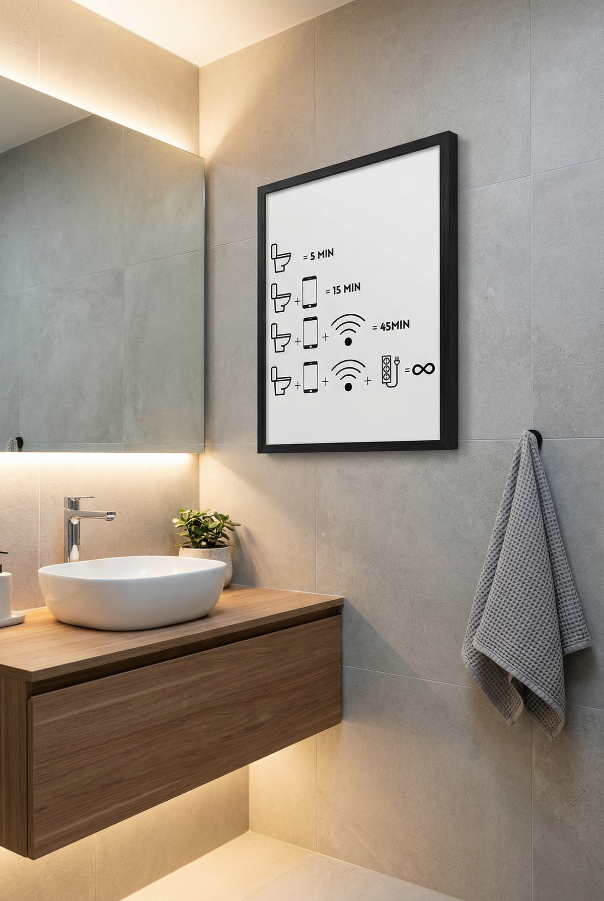 Unsere "Humor & Wohnen"-Kollektion zelebriert diese wertvollen Minuten der Privatsphäre. Das Poster "Zeiten auf dem Klo" ist mehr als ein Witz; es ist eine augenzwinkernde Anerkennung unserer modernen Gewohnheiten. Denn egal ob Manager oder Schüler – wenn die Tür zu ist, sind wir alle gleich (und hängen vermutlich alle am Handy). Machen Sie diesen Raum so sympathisch wie möglich!